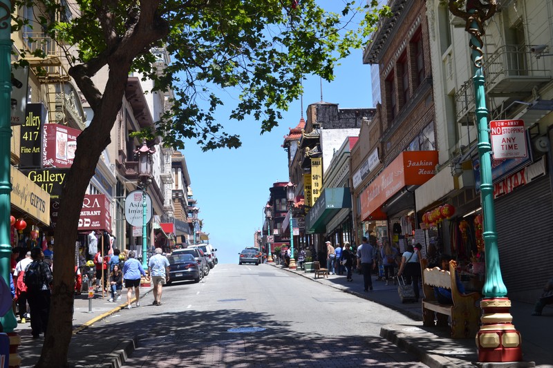 Puis, nous remontons vers le célèbre quartier de China town qui rassemble la plus grande communauté asiatique hors Asie et serait le plus grand quartier chinois des Etats-Unis.Aux intersections, nous ne nous lassons pas d’admirer les rues qui plongent à pic vers la mer ou le bas de la ville.