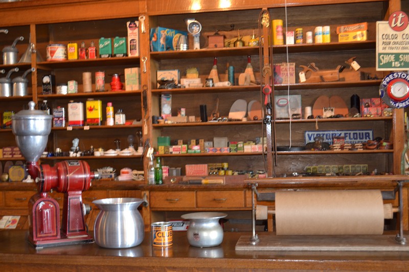 D’autres visiteurs arrivent et viennent grossir le groupe. La visite peut commencer. Nous commençons tout d’abord par un inventaire de l’épicerie mené avec talent par une animatrice qui nous conte l’histoire des produits en sollicitant les souvenirs de ses spectateurs et en nous racontant ou rappelant leur utilisation toujours avec beaucoup d’humour. Même si tout ne nous parle pas comme la neige dans les chaussures l’hiver… ou des produits que nous n’utilisions pas chez nous, nous sommes fascinés. Pour nous français, l’accent chantant et entraînant participe en plus au charme de la visite (même si, il faut l’avouer, parfois on ne comprend pas tout). On découvre de vieux remèdes, d’anciennes chaussures, des ustensile que l’on ne trouve plus aujourd’hui toujours accompagnés d’histoires et anecdotes tordantes.