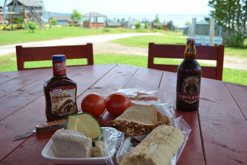 Parfait, le premier camping a encore de la place disponible et la réception ferme à 22h00, nous dormirons donc à Percé ce soir. Après une pause dans une poissonnerie de bord de route pour acheter de belles noix de Saint-Jacques fraîchement pêchées et dans un supermarché pour faire que quelques courses, nous arrivons au camping de Nature Océan Chalet vers 20h30.
