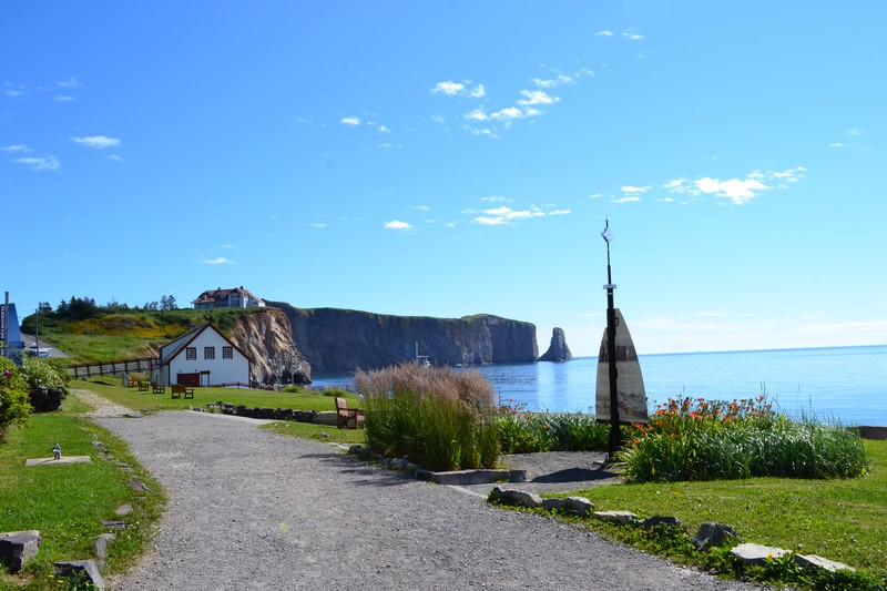 Nous terminons la visite dans la partie remise, où nous découvrons de nombreux outils et accessoires de l’époque, des pétrins, des charrettes, des cuisinières d’époque présentés toujours à travers des histoires rigolotes, des explications sur le mode de vie d’avant ou des légendes urbaines marrantes. C’est avec un grand sourire que nous sortons du musée une grosse heure plus tard, ravis de cet excellent voyage dans le passé que nous recommandons vivement. Un super moment à passer seul ou en famille ! Sur la route, nous découvrons le joli petit port du village puis nous reprenons la route en direction de Percé où nous découvrons un château puis empruntons un chemin jusqu’à un point de vue sur la baie. La vue d’en haut est vraiment splendide.