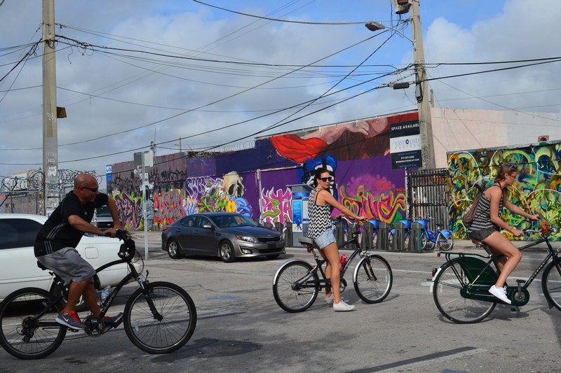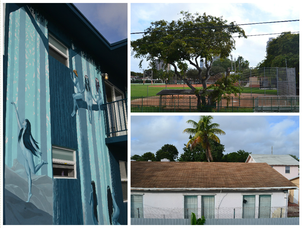 Le lendemain matin, nous décidons de partir prendre des photos avec Kaotza dans le quartier qui compte nombre de graffitis et fresques murales en tous genres. Nous partons donc motivées en ce matin du 25 décembre, commençons à faire nos réglages, prenons quelques photos de notre immeuble et des environs quand nous repérons un drôle de monsieur qui nous fixe derrière les grilles de son jardin. Il n’est pas frais et n’a pas l’air de tourner qu’à l’alcool.. Il rejoint un autre vieillard aussi peu clair que lui. Nous commençons à remarquer que le quartier n’a pas l’air des mieux fréquentés quand un cycliste s’arrête et nous conseille de ne pas nous balader avec nos appareils photos ici et d’aller plus au Sud pour visiter le quartier. Ok, bon on se disait bien aussi… On rentre donc sans tarder et décidons de filer côté océan à South Beach, du côté de Miami Beach. Sur la route, nous nous arrêtons, comme conseillé par le cycliste, plus au sud.